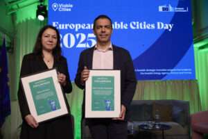 The Viable Cities Champions 2025 are Elena Simion and Marcos Ros Sempere. They are both receiving the award for their outstanding contributions to climate transition in cities. The award was presented